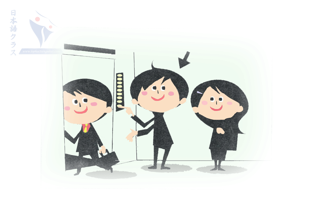| 会話練習 | A: Có người đang vội xuống thang máy. Khi nhấn nút "mở" xong, bạn sẽ nói gì? B: Mời vào trước. |